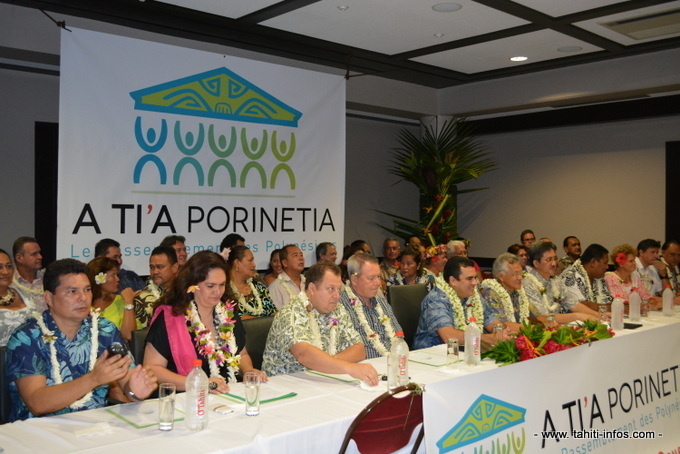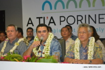 Prenant la parole en premier, Teva Rohfritsch a démarré son discours, d’une vingtaine de minutes, par un «Enfin, enfin cette rencontre avec vous, avec la population de notre pays, pour porter ce message de rassemblement, d’espoir, de renouveau, d’expérience. Ce message de cette nouvelle Polynésie que nous souhaitons toutes et tous» pour détailler la mise en lumière de ce nouveau rassemblement politique, ce 31 janvier 2013 «un mouvement politique qui va appeler les Polynésiens à se lever avec nous». Expliquant que le parcours de rassemblement entamé par les tavana, ou par le RAP (rassemblement autonomiste progressiste) était une nécessité «la dispersion n’est pas une alternative politique», Teva Rohfritsch a assuré que le rassemblement autour de A Ti’a Porinetia était fait pour durer. Pour cadrer les choses dès le début, tous les élus présents ont pris quatre engagements formels : 1°) A Ti’a Porinetia est un mouvement politique unique, à savoir une fédération regroupant les citoyens et partis politiques qui s’y engagent à ne former plus qu’un. 2°) un groupe uni de travail au sein de l’assemblée de Polynésie française va être créé sous l’entité A Ti’a Porinetia ; 3°) tous les candidats qui figureront sur la liste A Ti’a Porinetia aux prochaines élections territoriales, s’engageront par écrit à renoncer à leur siège et démissionner de l’assemblée s’ils se désolidarisent du groupe ; 4°) le mouvement prône un nouveau mode de gouvernance basé sur le dialogue et le partage de responsabilité.