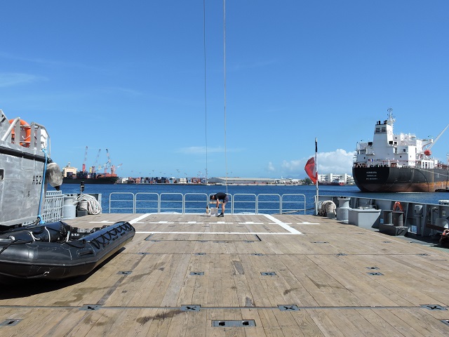 Il faut voir le bâtiment comme un bâtiment multi-missions. Il est capable de faire toutes les missions de souveraineté dans les espaces ultramarins : des missions de service public, de remorquage, de police des pêches, tout le panel des missions de projection de forces... On peut déployer quelques militaires, quelques gendarmes un peu partout dans les îles. On peut assurer des missions de transport et de logistique. On a de grosses capacités de transport (200 tonnes de solide et 200 tonnes de liquide). Cela représente plus de six conteneurs.