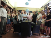 Maeva Guyon, une jeune lyonnaise était invitée au déjeuner. Elle a effectué des recherches sur le droit du travail en Polynésie, dans le cadre d’un mémoire qu’elle a soutenu en master 2. Après quatre mois de dur labeur, elle foule enfin le sol polynésien pour la première fois et part aux îles marquises. Là, elle y a rencontré Catherine Vannier, magistrat, présidente de la section détachée de Nuku-Hiva, également la présidente de l’AJPF, qui lui a annoncé une bonne nouvelle : elle avait obtenu son diplôme.