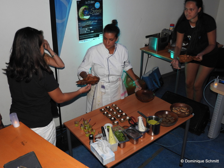 Grâce à son savoir-faire, la jeune Polynésienne a donné un délicieux avant-goût de préparations "anti-gaspillage" aux personnes présentes. Au menu : rillettes de thon curry-coco, gaspacho d'avocat, prawn cake et fines herbes, croquettes de fe'i et financiers banane et sésame. Un vrai régal ! Elle explique : "J'ai choisi ces plats car il y a plusieurs éléments que j'utilise pour chacun d'entre eux. Par exemple, pour le fe'i, je prends du gingembre et je récupère la peau pour cuire le poisson que je mets dans un bouillon. En cuisine, on a tendance à gaspiller beaucoup de choses et, étant sensible à l'écologie, j'essaie donc de minimiser mes déchets. J'ai tout recyclé, hormis les coquilles d'œufs. J'aime mettre en avant les produits locaux fournis par les producteurs du fenua." Notez aussi qu'un jeu concours a été lancé sur la page Facebook "Soirée aux Chandelles Earth Hour Tahiti 2017". Samedi, partagez une expérience unique pour la bonne cause.