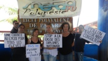 C‘est ainsi que tous vêtus de noir, les enseignants se sont réunis devant les établissements du lycée Hôtelier de Tahiti, des lycées professionnels d’Uturoa, de Faa’a et de Mahina, des lycées polyvalents d’Aorai, de Papara, de Taravao et Taaone et dans les différents Cetad et Segpa pour se faire entendre.