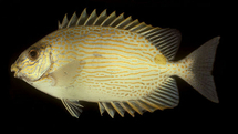 Le Picot (Siganus lineatus) est une espèce herbivore de la famille des Siganidés (poissons lapin), il est présent dans l’océan indien et dans le Pacifique central mais pas en Polynésie française. Reconnaissable par sa couleur bleu-gris, avec une marque vive de couleur jaune, il peut mesurer entre 20 et 30 cm pour un poids compris entre 200 et 800 grammes. Principalement capturé au filet, le picot, est un poisson très prisé en Nouvelle Calédonie, qui malheureusement, se raréfie, en raison d’une surpêche, au point que l’on ne voit pratiquement plus de picots de plus de 30 cm.