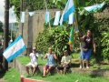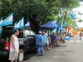 La commune historique tenue pendant trois décennies par Gaston Flosse, Pirae, reflète bien les forces politiques en présence. Les pro-Flosse sont positionnés face à l'une des deux entrées de l'école de Pirae-centre, où l'on vote. Ceux d'Oscar Temaru, une trentaine également, sont face à l'autre entrée. Deux autres formations tentaient d'investir un bout de trottoir : les jaunes de Teva Rohfritsch et les mauves de Teiva Manutahi. Ces quatre listes semblent être les seules à pouvoir prétendre au second tour.