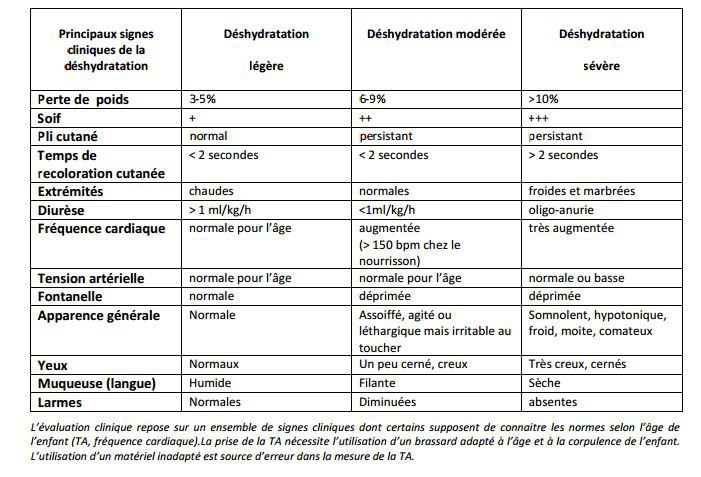- l’existence ou non d’une déshydratation et la rapidité d’installation des signes
