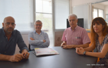 De gauche à droite : Yan Roy (rédacteur en chef La Dépêche de Tahiti), Dominique Auroy P-dg du groupe Média Polynésie, Pierre Marchesini, directeur de publication et enfin Virginie Gillet, rédactrice en chef du pôle magazines du groupe.
