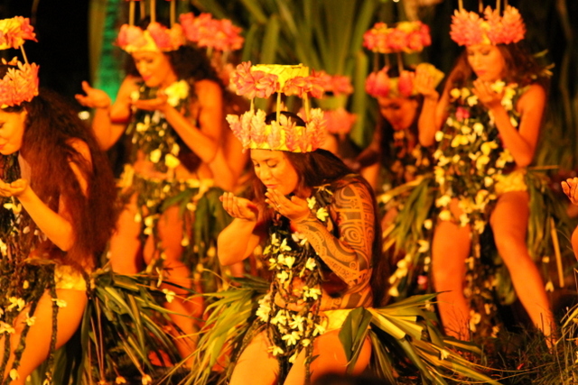 L'InterContinental propose chaque année un programme varié à ses spectateurs. La recette, née d'un savant mélange de ce qui fait la culture polynésienne, séduit. Tout commence aux alentours de 19 heures, lorsque les spectateurs s'avancent par grappes jusqu'au cœur du motu. Les conques résonnent et les torches brûlent. Les groupes traversent le pont bordé de part et d'autre par les danseurs. À l'entrée des artisans et un peintre, Gilles, amoureux de Gauguin. Il reproduit un tableau de son maître sur une toile de plus de deux mètres sur quatre. Plus avant se dressent les chaises, les tables et le buffet. En attendant que les artistes entrent en scène, chacun se met à son aise dans une ambiance feutrée. Enfin, vers 19h30, les allers-retours entre le buffet et les tables s'espacent. Les regards convergent vers l'esplanade du motu, le show démarre.