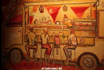 Tehina : Une fois payé le loyer, on avait pas grand chose. C’était un cadeau pour moi, d’aller au coin de boulevard Saint Michel, les magasins de fournitures de Beaux-arts. Wow… Ca faisait planer. Avoir du matériel pour raconter de futures histoires. Et puis dans ce quartier Latin du 5ème arrondissement, place de la Contrescarpe, rue Mouffetard, j’ai vu des clochards autour d’une fontaine, avec leurs chiens, barbus. Il y en avait un, on aurait dit ‘Dieu’ comme il était représenté avant, dans je ne sais plus quel livre. Il était allongé avec son rouge…Je me suis senti à l’aise, je suis allé directement parler avec eux, immédiatement j’ai senti qu’ils allaient nourrir ce que je ressentais en moi. Simples, partageurs puisqu’ils n’avaient rien, ils avaient du cœur. J’ai gardé ce côté poétique de l’homme de la rue qui ne triche pas. C’est là, maintenant. Cet état d’esprit m’a toujours nourri pour raconter mes histoires, mes tableaux. C’est une valeur sûre, je viens aussi de là".