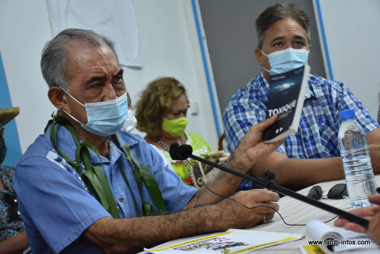 Oscar Temaru, mardi, durant la conférence de presse organisée au sujet de la manifestation anti-nucléaire Mā'ohi Lives Matter de ce samedi à Papeete.