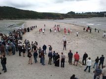MORIEUX, 12 août 2011 (AFP) - Quelque 400 agriculteurs se sont rassemblés vendredi sur la plage de Morieux (Côtes d'Armor) à l'occasion d'un match de foot destiné à tenter de démontrer l'inocuité des algues vertes et à protester contre la mise en cause de la profession dans le phénomène.