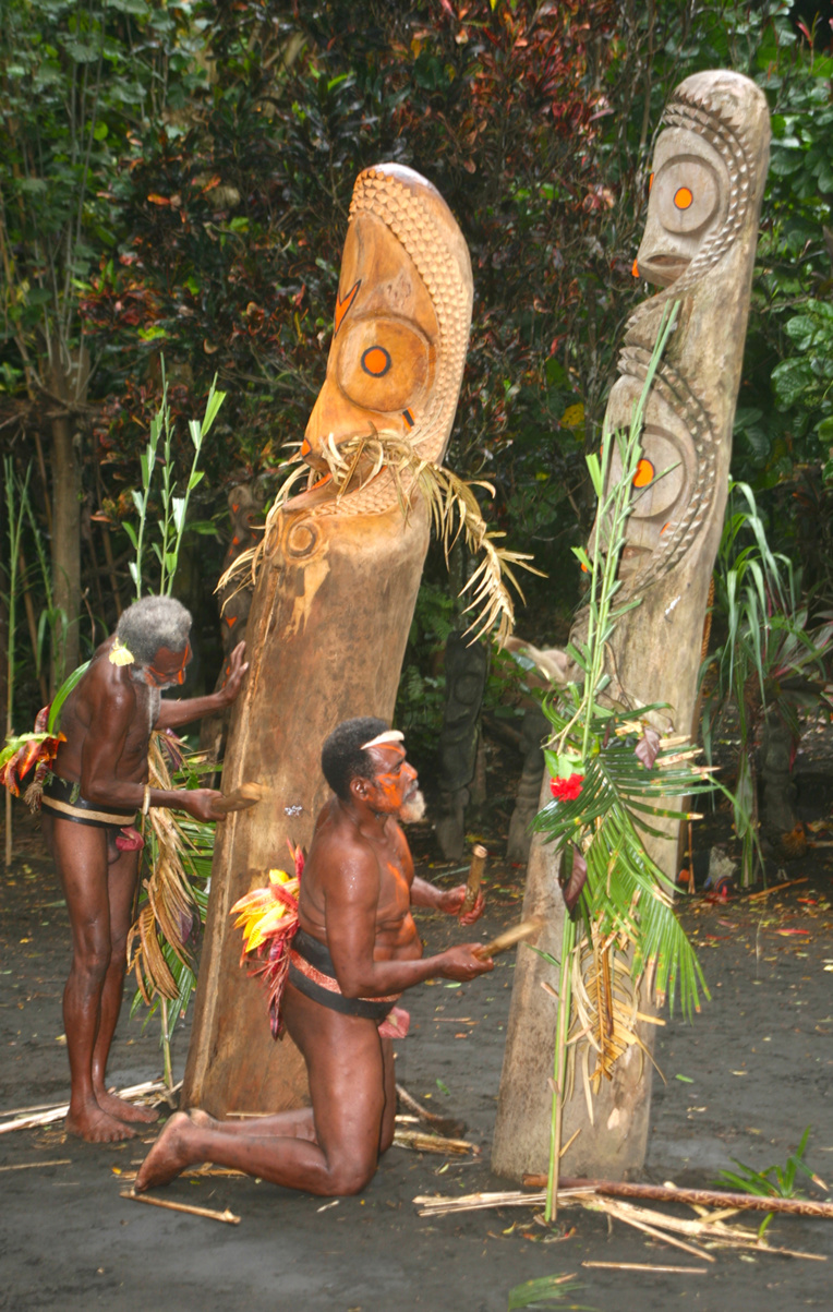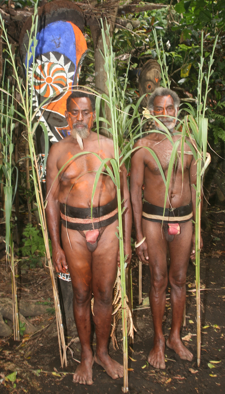 À Fanla, assis non loin de ces sculptures géantes, un chef francophone nous confirmera qu'elles symbolisent un chef disparu, la grandeur de son œuvre durant sa vie lui donnant le droit de séjourner sous forme de fougère sculptée sur le nasara. Et encore, selon une procédure d'une extrême complexité, la sculpture, vaguement anthropomorphe, pouvant mesurer quatre-vingts centimètres ou dépasser trois mètres, être “brute” ou peinte avec une rare sophistication. C'est selon le prestige de l'ancêtre en question. Impossible d'en savoir plus et d'entrer dans le détail de rites inextricables de la kastom (la sacro-sainte coutume) qui règle la vie de tous à chaque instant du jour comme de la nuit.