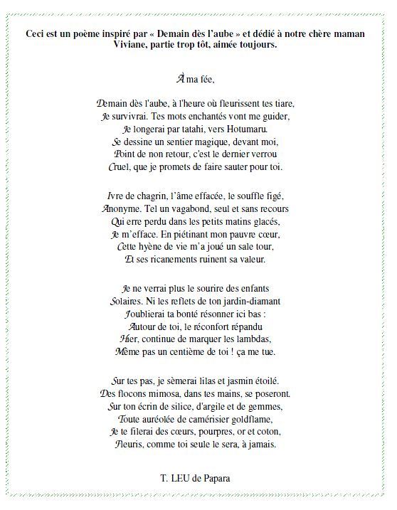 Iaorana, ce poème est dédié à ma mère et à toutes les mamans du monde,