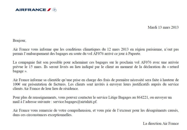 Communiqué de Air France : Un retard pour les bagages du vol AF076