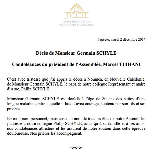 Condoléances pour le décès du père de Philip Schyle