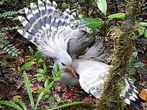 Reconnaissable à sa huppe, qu'il déploie pour intimider ou lors de la parade nuptiale, le cagou se nourrit de larves, d'escargots ou de vers, de sorte qu'il n'a pas besoin de s'élever dans les arbres pour se nourrir. Il a donc fini par "oublier" de voler, a-t-elle également expliqué.