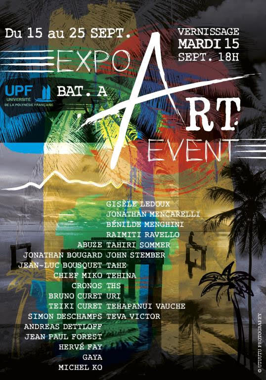 Dans l'objectif de transmettre leur passion et d'éveiller notre sensibilité à l'Art, 20 artistes contemporains du fenua investissent l'Université de la Polynésie française (UPF) du 15 au 25 septembre. Qu'ils soient connus ou méconnus, tous ont en commun le partage et la générosité d'être présents au travers de leurs créations. L'opportunité pour nous de les découvrir et d'aller à leur rencontre.