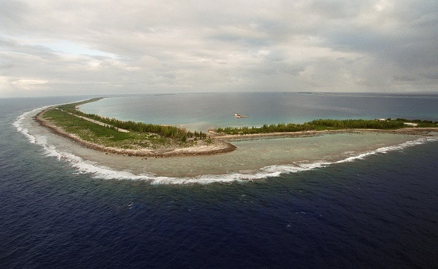 Vue aérienne datée du 6 juin 2000 de l'atoll de Fangataufa. (Photo : AFP)