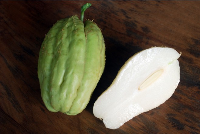 La chair blanchâtre de la Chouchoute a un goût assez fade et une texture qui s’apparente un mélange entre la pomme de terre et le concombre. C’est une excellente source de vitamine C et un légume très peu calorique (seulement 12 calories pour 100g) La chouchoute verte est consommée crue, râpée en salade ou en crudité, souvent mariné au jus de citron vert. Une fois mûre, elle est généralement cuite et est alors servie en gratin, en soufflé, en beignet, voire même en potage. Elle est également délicieuse en dessert, en tarte et en confiture.