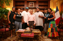 Le Président de la Polynésie française, Gaston TONG SANG, a reçu ce matin, la visite de l’association FETIA HAU qui organise un concert qui réunit des artistes renommés de Hawaii, à la place Toata en cette fin de semaine. Les membres de l’association ont remercié le Président du Pays pour le soutien qui leur a été apporté dans la mise en œuvre de leur projet. Le Président du Pays les a félicités pour cette initiative tout en les encourageant à la renouveler.