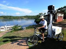 Deux "Google trikes" ont débuté en août leur périple à Tumbira, une ville amazonienne près de Manaus (nord du Brésil), l'un flottant sur un bateau et l'autre pédalant à terre.