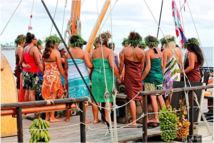 « Le matin même, à Bora Bora, le capitaine Duncan fait une réunion. Il me regarde et me dit : « Diana, est-ce que ça t’intéresserait d’intégrer une pirogue de femmes ? De Bora Bora jusqu’à Aitutaki ». Aitutaki est une île au nord est de Rarotonga. Ça fait partie des îles Cook. Sans hésiter j’ai accepté. Ils devaient choisir deux femmes de chaque pirogue pour aller sur Hine Moana. Nous sommes 16 à bord. Magnus, capitaine et responsable de la flottille, était là surtout pour la sécurité, mais le véritable capitaine, c’était une femme. Une Tongienne, Onaufo, une belle femme, avec une prestance et un charisme extraordinaire.
