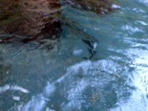 Lorsqu’il me parle, Maspo sort de son rocher, comme pour nous saluer, elle vient, s’enroule autour de lui, elle se fait affectueuse et puis glisse dans l’eau pour disparaître. La 1ère fois que Joseph l’a vue, c’est son fils qui l’a repérée, elle ne dépassait pas 50 cm et il lui manquait un œil. Depuis, ils l’ont nourrie et Maspo fait aujourd’hui plus d’un mètre de long, elle est épaisse et c’est la plus grosse des anguilles de la source à présent.