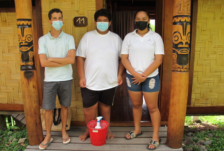 “Ce partenariat conclu avec ces deux établissements touristiques de l’île, explique Grégory Bru, le professeur de biotechnologie, santé et environnement, permet aux élèves de voir comment fonctionne un hôtel et plus précisément la partie hébergement. C’est-à-dire qu’ils travaillent sur la préparation des bungalows ou des chambres, la gestion du linge de lit et de toilette, puis ils sont en contact avec les professionnels du métier. D’autre part, ce partenariat est très intéressant car les élèves ont affaire à deux hébergements très différents puisque nous avons d’une part un établissement 4 étoiles membre de Relais et Châteaux, Le Nuku Hiva, et d’autre part, une pension de famille, le He’e Tai inn, donc deux modes de fonctionnement totalement différents.”