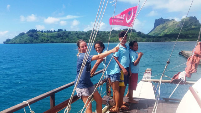 Les grandes expéditions sont des opportunités uniques pour acquérir des données nouvelles et améliorer la connaissance des écosystèmes marins, même sur une pirogue traditionnelle à voile. Le Docteur Hannah Steewart, affiliée à la station Gump de l’Université Californie Berkeley à Moorea, a pris part au voyage de la pirogue Fa’afaite aux Australes en tant que scientifique embarquée. Elle était chargée par différents laboratoires internationaux, comme l’Université de Duke et le programme LTER, d’enregistrer des données au cours du voyage comme le relevé de la température de l’eau de surface et la collecte de plastiques flottants pour analyser les communautés microbiennes associées. Au-delà de ces recherches, Hannah et l’équipage de Fa’afaite ont reçu à bord des enfants de chaque île, pour une initiation aux bases de la navigation traditionnelle et de la biologie marine. Ils ont par exemple collecté du plancton avec un filet et tenté d’identifier des larves de poissons sous un microscope. Le passage de Faafaite aux Australes a créé de nouvelles vocations de futurs capitaines ou biologistes!