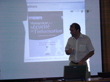 Matthieu DRUILHE, (Office des Postes et Télécommunications), Jean-Michel GAYDA ( CAP SYNERGIE) et François PILLONNEAU ( Services informatiques du territoire), qui s'occupent du CLUSIR, recevaient aujourd'hui Alexandre FERNANDEZ, consultant chez HSC, qui a présenté à travers un exposé brillant et passionné, devant un public chevronné et nombreux, les enjeux de la sécurité dans les systèmes d'information et expliqué les procédures d'accession à la norme ISO 27 001