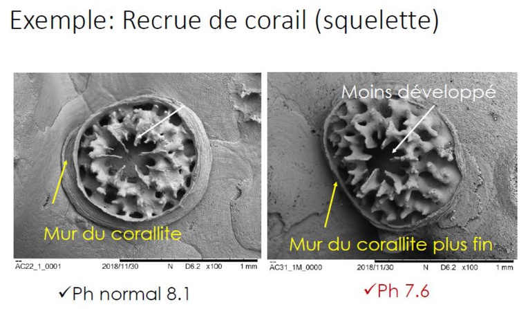 "Avec l'acidification, les coraux vont avoir du mal à grandir et seront plus fragiles"