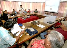 Après un rappel des missions de la Délégation au développement des communes (DDC) et de son action depuis sa création en 2007, notamment dans l’archipel des Iles-sous-le-Vent, Edouard Fritch a présenté les grandes lignes du projet de loi, ainsi que de l’arrêté d’application qui fixera les taux directeurs du concours de la Polynésie française en fonction de la nature des projets communaux.