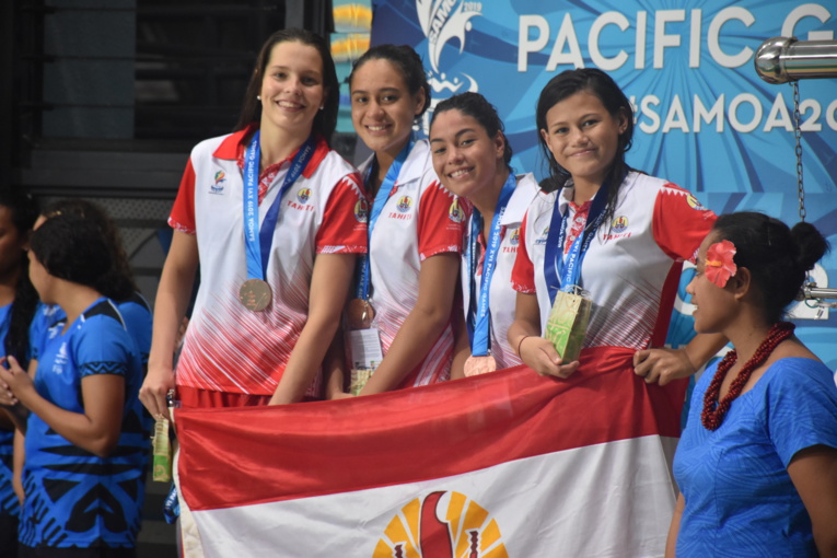 La première journée des finales de natation s'est conclue avec les relais 4 nages féminins et masculins. Chez les femmes le relais composé d'Angéline Tregoat (dos), Poerani Bertrand (brasse), Alizée Diaz (papillon) et Reva Reignier (crawl) a réussi à décrocher une médaille de bronze. Le titre est revenue à la Nouvelle-Calédonie qui a devancé le relais fidjien.