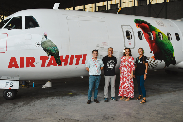 En effet, ce mercredi, la compagnie aérienne Air Tahiti dévoilait son tout dernier ATR 72-600, le Revanui. Un nouvel avion, arrivé en Polynésie en décembre dernier, et dont l'habillage espère attirer l'attention des futurs passagers : “Nous avons décidé de proposer une livrée éphémère, assortie de stickers, et de mettre en avant la biodiversité de la Polynésie en sensibilisant la population sur certaines espèces endémiques”, explique Vairani Tetaria, responsable marketing au sein d’Air Tahiti. “Une action en partenariat avec la SOP Manu, qui nous a fourni les photos, et avec qui on collabore depuis dix ans maintenant. (...) L'objectif de l'avion est de sensibiliser la population à la préservation de ces espèces. La SOP Manu fait déjà un travail formidable dans ce sens afin de les préserver des différents prédateurs, et par le passé, nous avons déjà mené des projets communs. Par exemple, il y a quelques mois, nous avons fait un transfert de hérons depuis Tahiti vers Huahine. Il y a quelques années, nous avons également transféré le vini ura depuis Rimatara vers les îles Cook. "