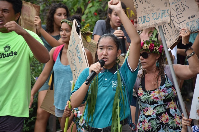 Greta Thunberg a aussi lancé un mouvement mondial de "grève scolaire". Nathalie Hoang en parle alors à ses camarades. « Beaucoup de personnes considéraient que faire la grève ne changerait rien. Ne plus utiliser de bouteille d’eau en plastique, c’est bien. C’est une des actions nécessaires dans notre quotidien mais cela ne suffit plus. Il faut changer le système », explique-t-elle calmement avant de poursuivre : « En 2015, selon l’Institut de la statistique de la Polynésie française, 20 % de la population de la Polynésie française vivait en dessous du seuil de pauvreté monétaire relative. C’est choquant quand on sait qu’on a plein de ressources sur cette planète. Je souhaite bouleverser ces inégalités ».