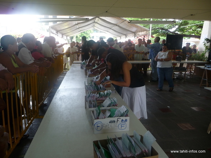 Papeete a été paralysée par les embouteillages, car seules 4.000 cartes d'électeurs avaient été retirées au préalable sur 17.953. Les électeurs qui n'avaient pas retiré leurs cartes plus tôt ont donc dû patienter. C'est ce qui a provoqué les longues files d'attente devant l'école Mamao de Papeete où se déroulait le scrutin. Certains se sont découragés et ont annoncé qu'ils ne voteraient pas.