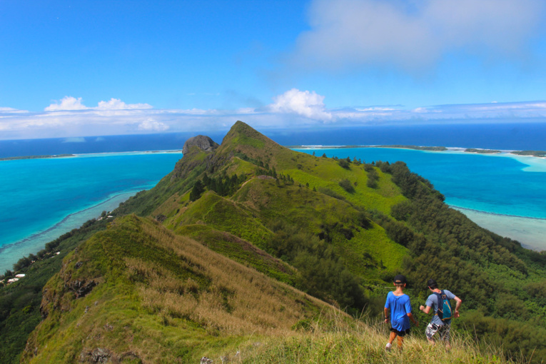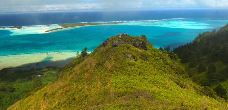 Pour apprécier pleinement la richesse de sa palette de bleus, il faut, malgré tout, faire un petit effort ; Vavita (ancien nom de Raivavae) ne se laisse découvrir que depuis la crête courant le long du sommet du mont Hiro. Pas de quoi fouetter un chat nous diront les bons grimpeurs, habitués aux randonnées en montagne. Avec un guide (c’est vivement conseillé), l’ascension se fait en deux temps : en partant de la route ceinturant la côte, quel que soit l’itinéraire choisi, il faut compter trois-quarts d’heure d’efforts sur une pente assez raide, trajet s’effectuant en partie à l’ombre des purau et autres arbres indigènes. C’est la partie difficile de l’excursion, le raidillon pouvant demander plus d’une heure aux moins lestes (mais trente minutes aux habitués).