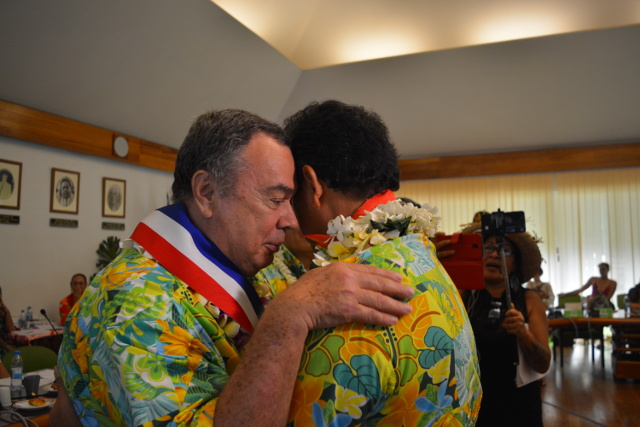 Antoine Rua et Georges Doom font leur entrée en tant que 9e et 10e adjoint. Aitu Pommier devient le premier adjoint. Le doyen de l'équipe municipale (72 ans en décembre) était jusqu'ici le deuxième adjoint en charge des finances. "J'ai été très touchée que Simplicio me propose cette fonction. Ce n'est pas un poste facile. En son absence, tout reposera sur moi. Mais dans la continuité de ce qu'a mis en place notre regretté tavana, j'ai décidé d'accepter cette fonction. Nous avons tous décidé d'être autour de Simplicio pour compléter l'œuvre de tavana."