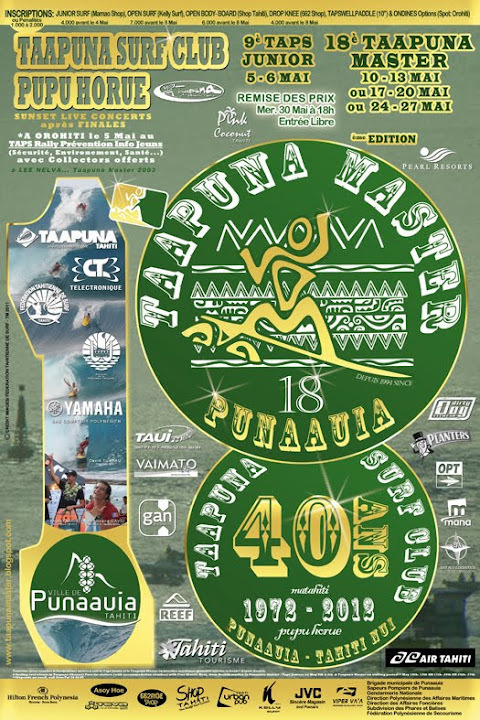 Nous avons aujoud'hui 32 surfers avec des calibres locaux (anciens Taapuna Master surf, du championnat fédéral..notre double champion du monde Hira..) mais aussi notre champion WQS Alain Rioux ; donc du très haut niveau en perspective!!!