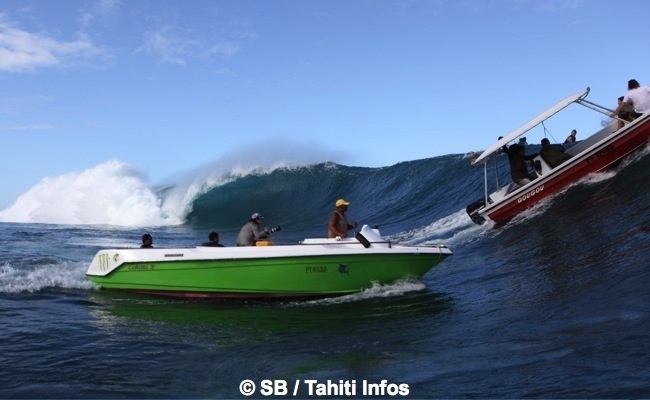 Stéphane Bernardin, un photographe amateur, capture la scène. Il se trouve juste à côté dans le bateau de Bjarn Drollet, qui n’est autre que le père de Manoa Drollet un des surfeurs les plus doués à Teahupo’o. Avec sa fille Cindy, Bjarn propose sous l’enseigne ‘Teahupo’o Tahiti Surfari’ des excursions à la presqu’île, des sorties baleine et des visites de la vague mythique en alliant expérience et respect des règles de sécurité.