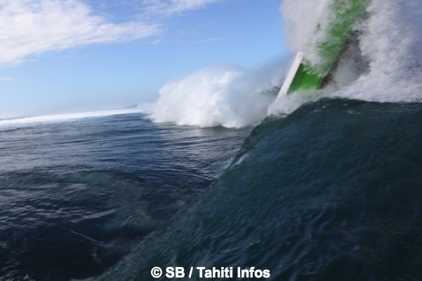 Un ‘swell’ conséquent a de nouveau touché Tahiti, mettant en action la vague mythique de la presqu’île avec 4,5 m de houle annoncée, ce qui a donné à l’arrivée au contact du récif des vagues de plus de 8 mètres.