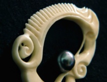 «On dirait de la dentelle ! C’est très minutieux ! On ne voit pas ça ailleurs ! » : les visiteurs du salon « I love you », qui se tient jusqu’au 14 février à l’Assemblée de Polynésie, ont été séduits par les créations de l’artiste Manutea D., originaire de Tahiti mais actuellement installé aux Marquises. Ses bijoux en os de bœuf et bois précieux, parfois couronnés d’une perle, sont de véritables sculptures miniatures, d’une finition remarquable. « Je m’inspire de l’art polynésien, bien sûr, explique Manutea, mais aussi beaucoup de l’Art Nouveau que j’ai découvert pendant mes études, lors d’un voyage en Allemagne. Chaque pièce est unique, entièrement faite à la main. Ce qui me demande le plus de temps, c’est de trouver un motif qui s’adapte parfaitement à la pièce d’os brut. Ce sont toujours de petites surfaces, avec peu d’épaisseur, dont il faut réussir à tirer la plus belle forme possible, en trois dimensions.» Il met aussi un point d’honneur à n’utiliser que des perles de qualité et des montures en argent ou en plaqué or : « J’ai toujours trouvé dommage de monter de beaux bijoux sur des cordons en caoutchouc ». C’est le premier salon de Manutea, qui espère à terme pouvoir vivre totalement de sa passion.