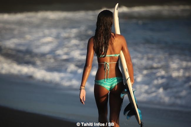 Le 23 avril 2015. En marge du dernier Papara Pro Surf Festival, Tahiti Infos a pu interviewer la jeune Vaimiti Teiefitu et prendre quelques clichés sans artifices. La jeune femme surfe depuis un an, elle fait également du fitness, du yoga et respire la santé. C’est Lorenzo Avvenenti son copain, qui rappelons-le au passage est le Taapuna Master 2013, qui lui a transmis le virus du surf.