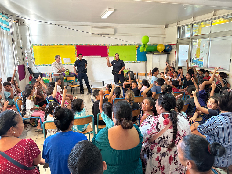 Tahiti, le 19 mars 2025 - Alors que les violences ou les faits de harcèlement se multiplient dans les cours de récréation, certains établissements scolaires ont décidé de prendre les devants. C'est le cas de l'école primaire protestante de Taunoa qui a fait venir spécialement la DTPN (Police Nationale) afin de sensibiliser ses élèves, et notamment les plus petits, ainsi que les parents.