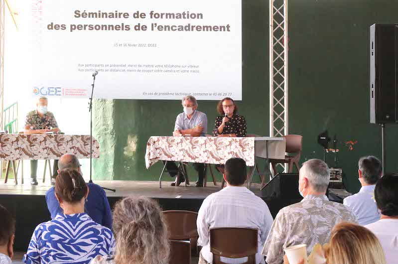 Tahiti, le 147 février 2022 - À l’occasion du séminaire qui s’est déroulé du mardi 15 au mercredi 16 février, la ministre a annoncé, pour la rentrée scolaire prochaine, l’ouverture de 20 postes de professeurs des écoles dans la brigade de formation continue.