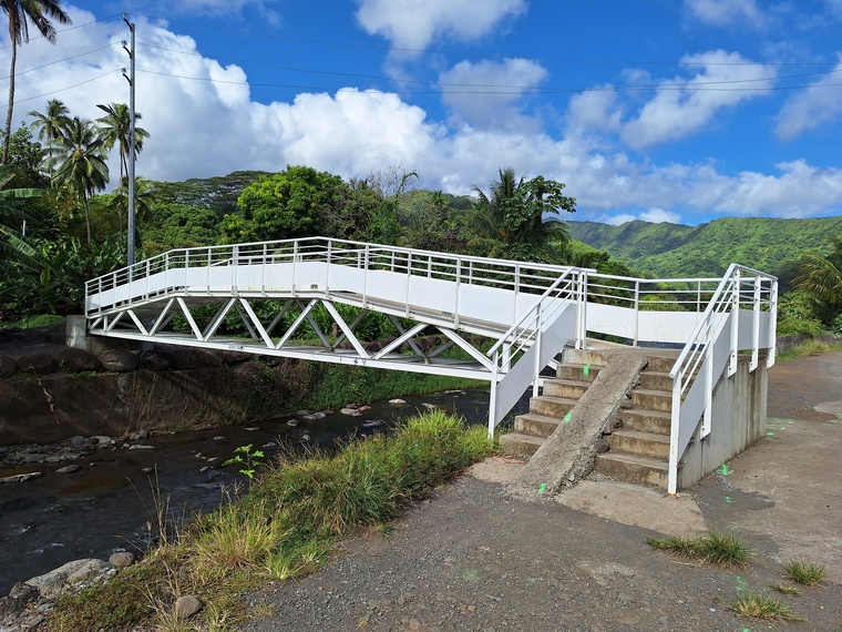Tahiti, le 25 février 2025 – Le coup d’envoi des travaux d’aménagement d’un accès pour les personnes à mobilité réduite (PMR) a été donné ce mardi, au niveau de la passerelle piétonne de Faaiti, à Mahaena, pour une durée de cinq mois.