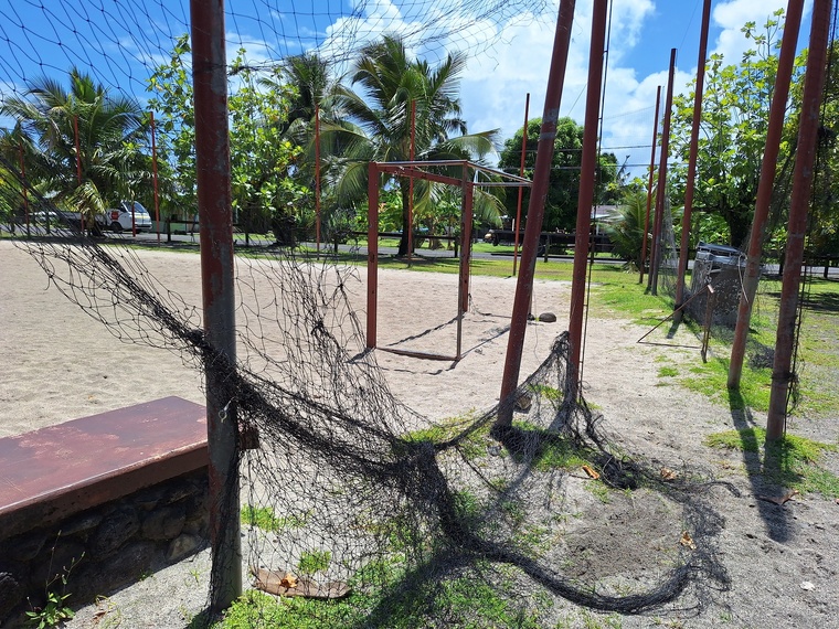 C’est l’un des premiers parcs publics aménagés en bord de mer à la Presqu’île. Inauguré en 2014 au cœur du village de Tautira, le parc de Tatatua est plébiscité par les riverains comme par les visiteurs. Si la qualité de l’entretien paysager est à saluer, en revanche, plusieurs infrastructures ont été dégradées au fil des utilisations, des intempéries et parfois des incivilités. Souvent inondé, le terrain de beach soccer se retrouve privé de filets de protection, partis en lambeaux. Quant à l’aire de jeux pour enfants et aux agrès sportifs, trop abîmés, ils ont été retirés il y a quelques mois par mesure de sécurité.