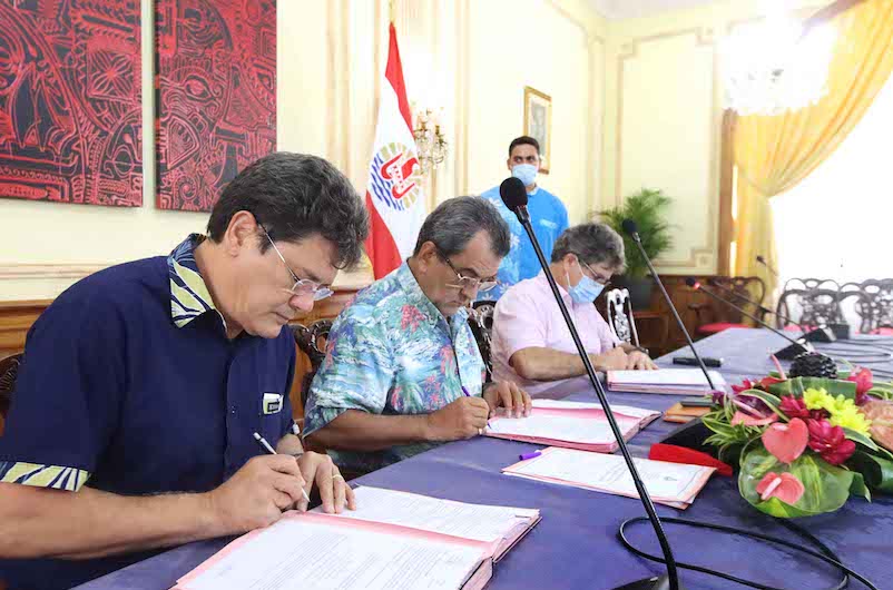 Tahiti, le 6 décembre 2021 – Le Pays a signé la convention pour la subvention d'équilibre de 8,1 milliards de Fcfp avec Air Tahiti Nui. En contrepartie, la compagnie s'engage sur un plan de redressement de cinq ans.