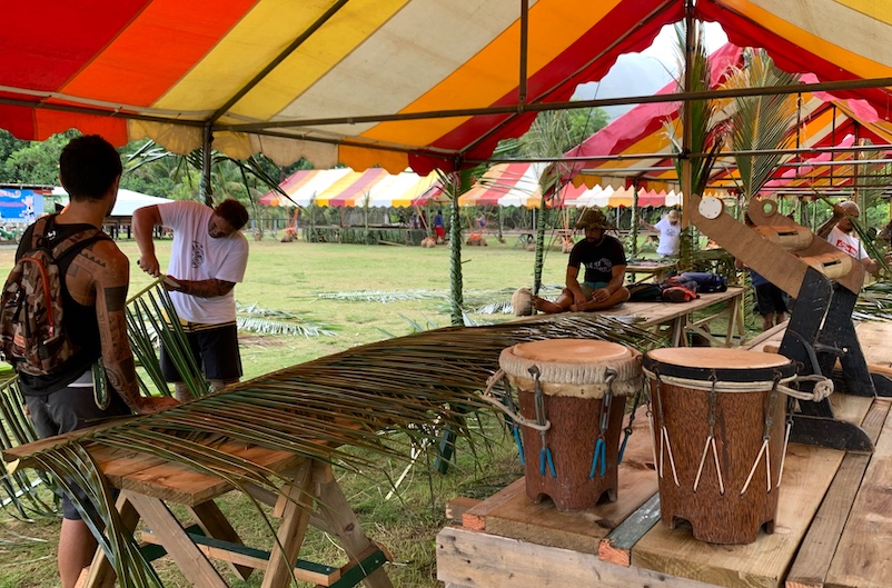 Les délégations sont arrivées à Fatu Hiva des quatre coins de l'archipel marquisien. Après Nuku Hiva, celles de Ua Pou et Ua Huka ont débarqué sur l'île mardi, après 14 heures de traversée. La délégation de Tahuata est arrivée tôt mercredi matin. À Omoa, toutes s'activent à présent et se préparent à assurer des animations hors spectacles. Les nombreux stands artisanaux ouvriront vendredi.