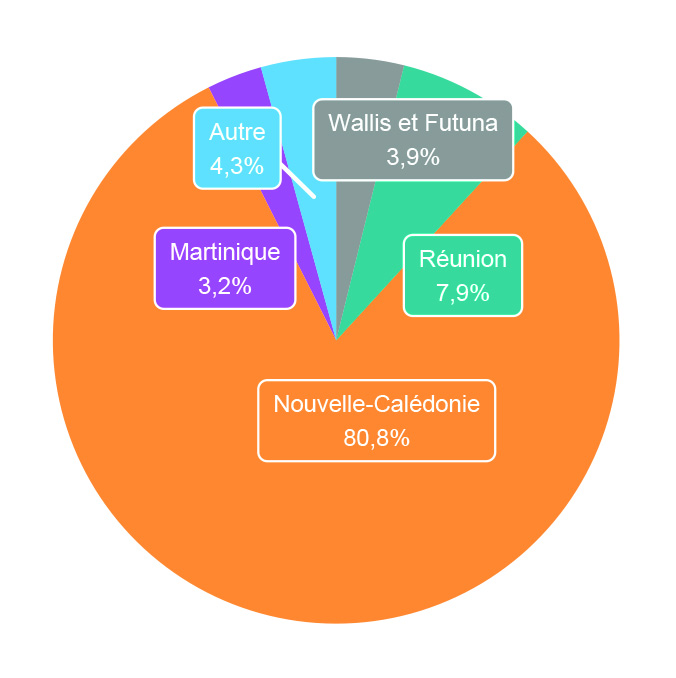 Les enfants majeurs vivant à l’étranger sont les plus jeunes (25 ans et demi) suivis de ceux qui résident au fenua ou en France métropolitaine (27 ans en moyenne). Les plus âgés sont ceux qui sont installés en Nouvelle-Calédonie avec 31 ans en moyenne. Le Caillou est en effet une destination moins attractive pour les plus jeunes générations qui privilégient une poursuite d’études. La destination attire en revanche les jeunes à la recherche d’emplois peu qualifiés. Reste que lorsque les familles ont un membre implanté dans une collectivité ultramarine française, c’est principalement en Nouvelle-Calédonie (80,8%).