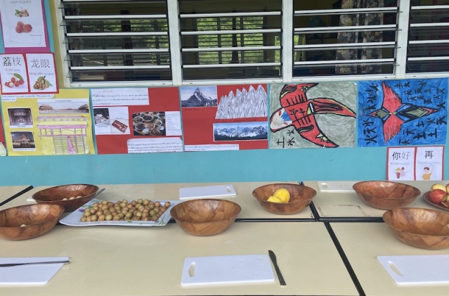 Du côté de Fare, pour célébrer la veille des vacances et du vendredi vert, les enseignants de l’école maternelle et primaire ont concrétisé leur dernier projet pédagogique sur le thème de l’Asie. Quatorze ateliers tournants étaient tenus par les enseignants et élèves tels que la calligraphie, l'origami, la peinture, le pangramme, les lanternes, mais aussi de nombreux jeux tels que le mah-jong, mikado, assiette chinoise et autres jeux d’adresse. Sans oublier les ateliers de cuisine asiatique avec la confection de chao pao et de frites chinoises.
