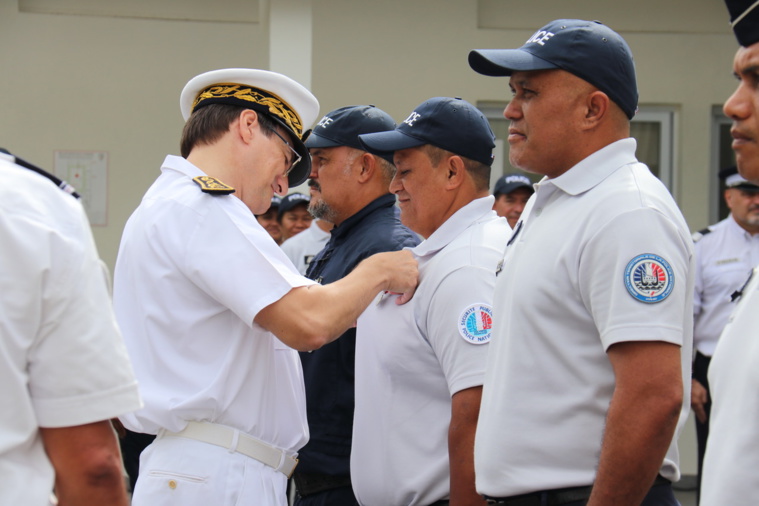 A cette occasion, quatre fonctionnaires de police et un agent administratif – le brigadier-chef Manuterarii Hunter, le brigadier Yannick Teaniniuraitemoana, les gardiens de la paix, Jean-Louis Maruake et Arsène Anihia ainsi que l'adjointe administrative principale 2 ème classe, Sandra Ateni – ont été décorés de la médaille d'honneur de la police nationale échelon argent.